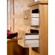 The Hamilton Ash Bedroom Furniture Set of 3 is an elegant set which reflects this, and each piece has an ash veneer structure with a lacquered finish. The set consists of a bedside cabinet with 2 dovetail drawers which both have round handles on, a chest of drawers with two wide dovetail drawers and two smaller top dovetail drawers. and a wardrobe with 2 doors with a three panel design on each door. The design of the Hamilton Ash Bedroom Furniture Set of 3 means that it would be ideal for a charming room.